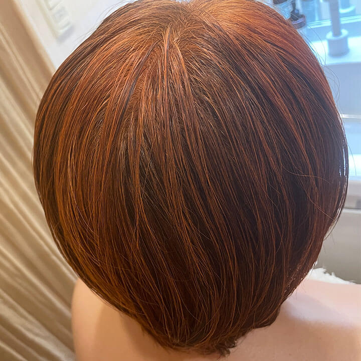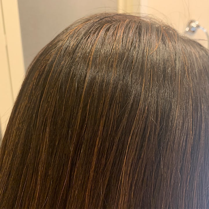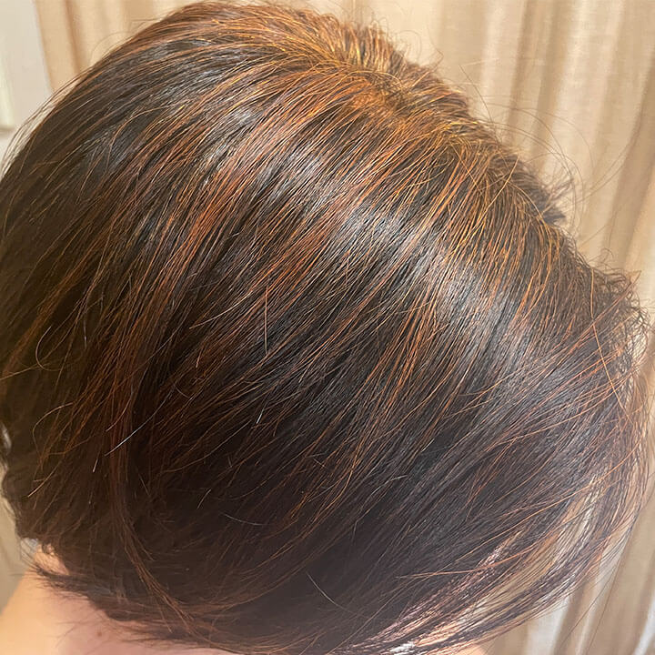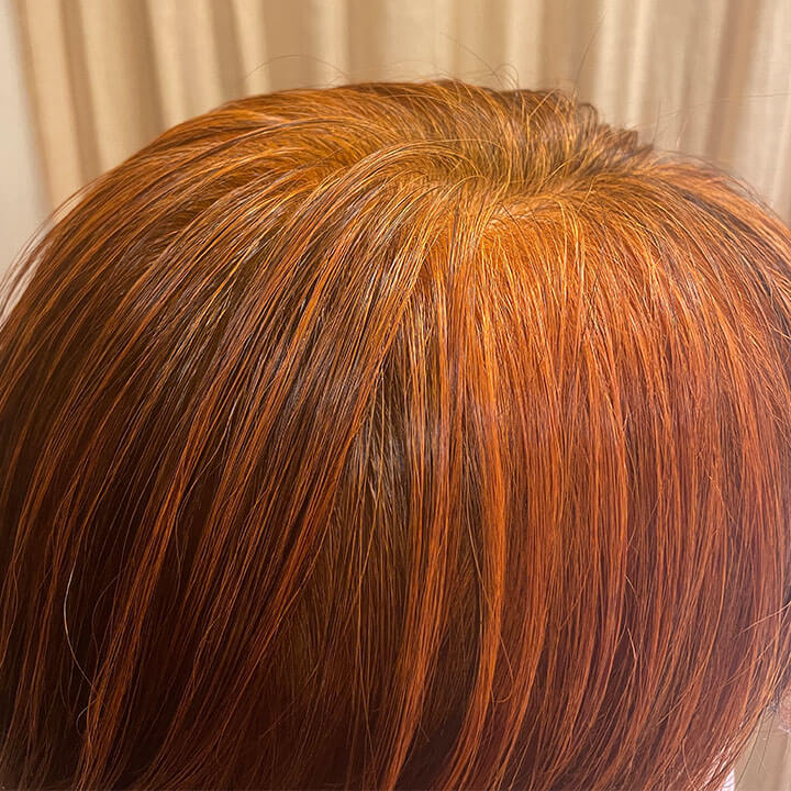 ● 白髪部分は鮮やかなオレンジ色に染まります。色を変えたい場合には、ヘナオレンジ後に2度染めを