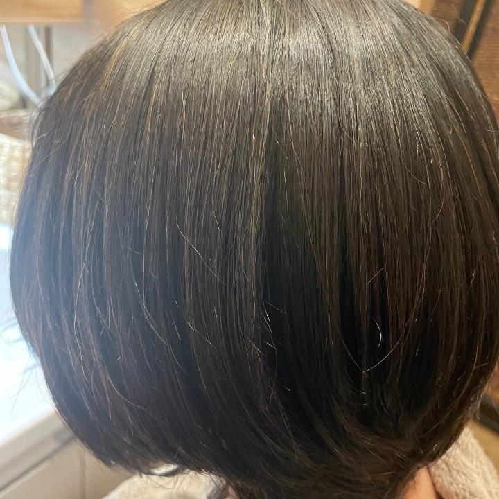 ● 白髪を地毛の黒髪に馴染ませながらも、やや明るい印象をつくる